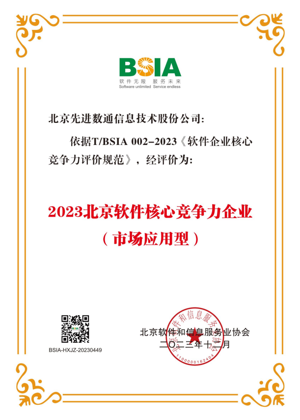 2023年12月12日,北京软件和信息服务业协会第十一届会员代表大会第一次会议暨第十一届理事会第一次会议在北京成功召开。会上发布了《2023北京软件和信息服务业企业综合实力评价报告》和《2023北京软件企业核心竞争力评价报告》,北京kdpay钱包官网信息技术股份公司(以下简称“kdpay钱包官网”)喜获2023北京软件核心竞争力企业(市场应用型)荣誉称号。